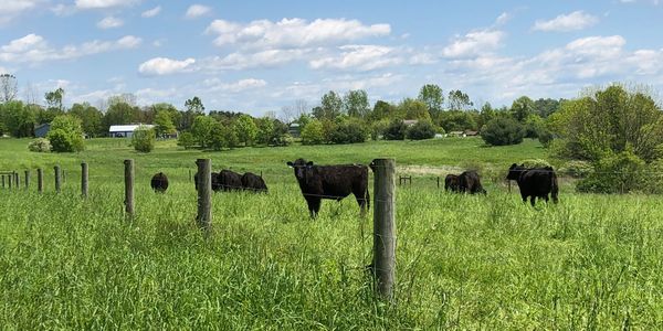 Black Angus cattle have free range in lush pastures, made up of clover, timothy and orchard grass...never confining to a feed lot. During the Winter months, cattle are fed haylage and dry hay, organically grown at a nearby farm. Cattle are never fed corn or any type of grain, adhering to the grass fed guidelines. Growth hormones and antibiotics are never used. No vaccinations of any type.